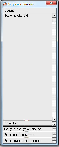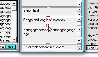 | Note: Start resizing by dragging the red drag handle above the 'Export field' upwards, then drag the handle above the 'Range and length of selection' field upward, and finally drag the handle above the search characters upwards (this last step is what is shown below). |