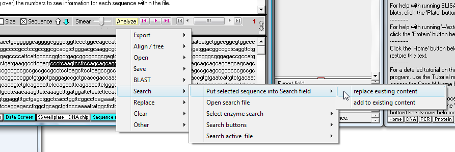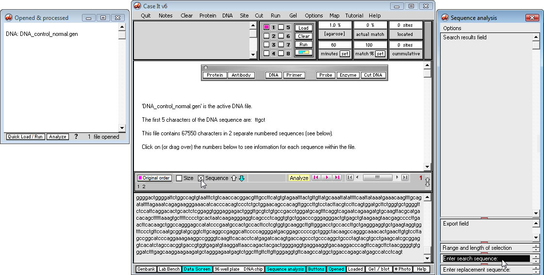 Case It v6 has enhanced features for searching DNA and protein sequences, involving the new 'Sequence analysis' window. This tutorial describes some but not all of the functionality of that window, using a Huntington's disease example. Specifically, we will search for the triplet repeat CAG which is associated with this disease condition.