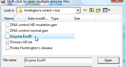3. Click the DNA button on the silver button bar of the Data Screen, and open the following folders: Case It v6 - > Tutorials -> 'Huntington's control + mut' folder