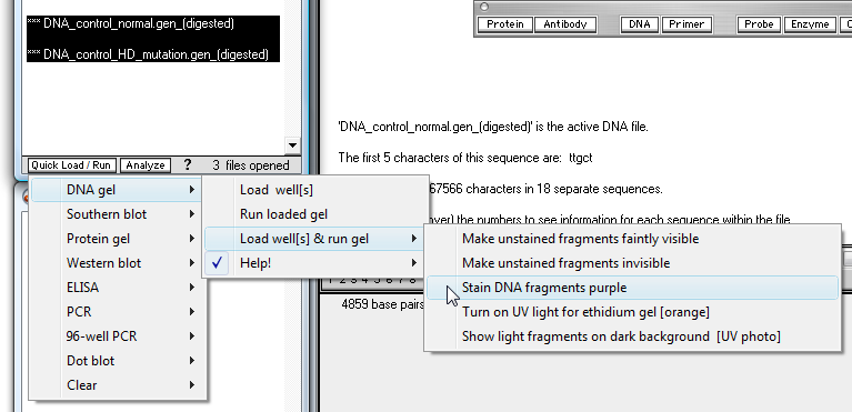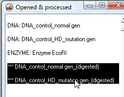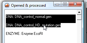 9. We will now determine the number of repeats in the mutated sequence, so click the 'DNA' button on the silver button bar and open 'DNA control HD mutation.gen'.