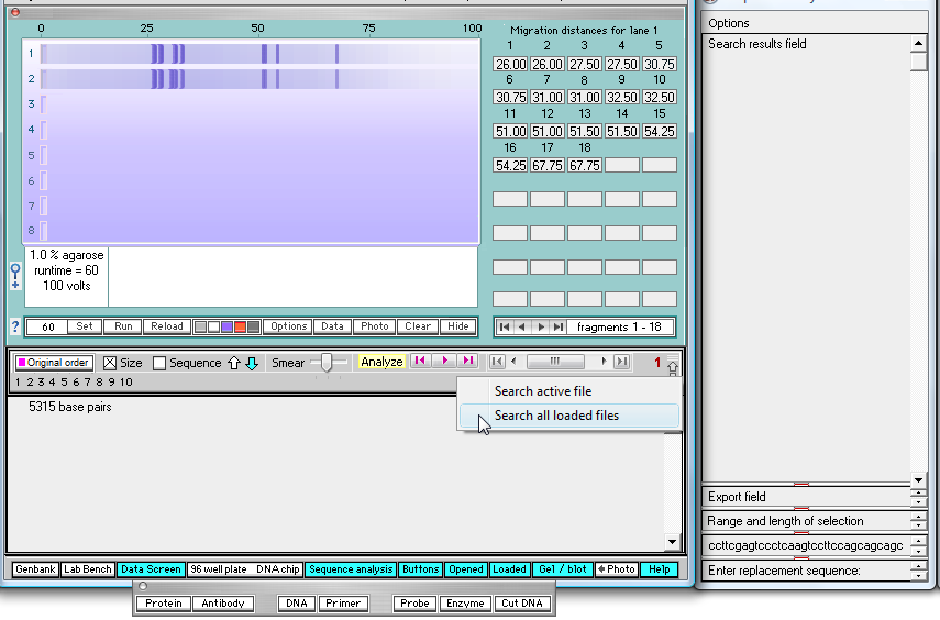 | Note: Loading must precede searching even if you do not intend to run a gel - it is just the way the program works. |