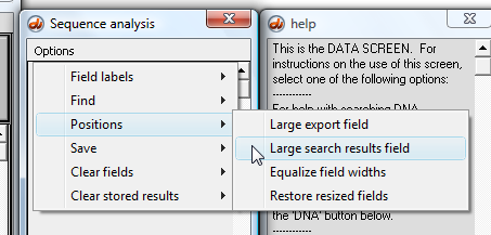 2. The Sequence Analysis (SA) window appears to the right of the Data Screen, and the Help window is automatically displaced to the right when the SA window opens.
