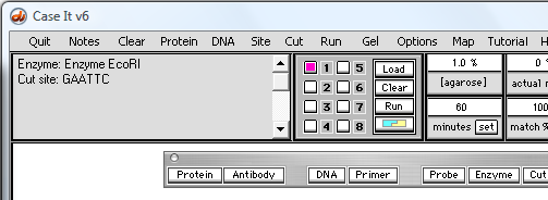 20. Click the 'Enzyme button and select 'Enzyme EcoRI', and the enzyme recognition sequence will appear in the upper left-hand field of the Data Screen (third graphic below).